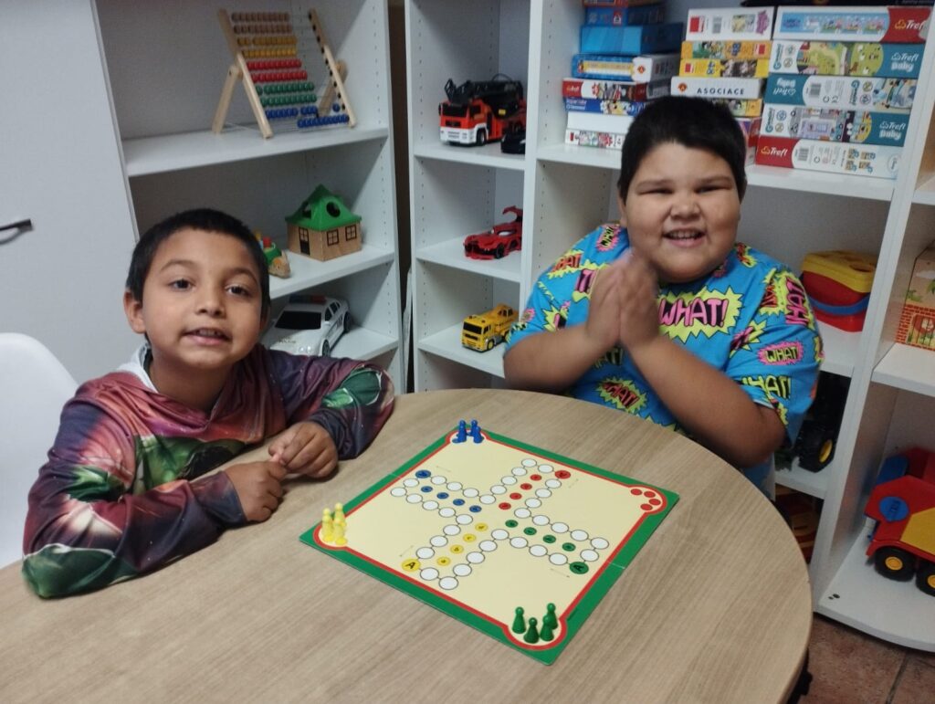 I když je venku nepříznivé počasí, naši klienti můžou společně strávit odpoledne ve společenské místnosti hraním stolních her.🧩