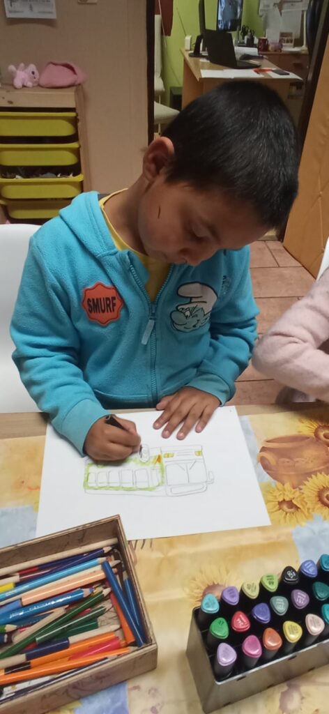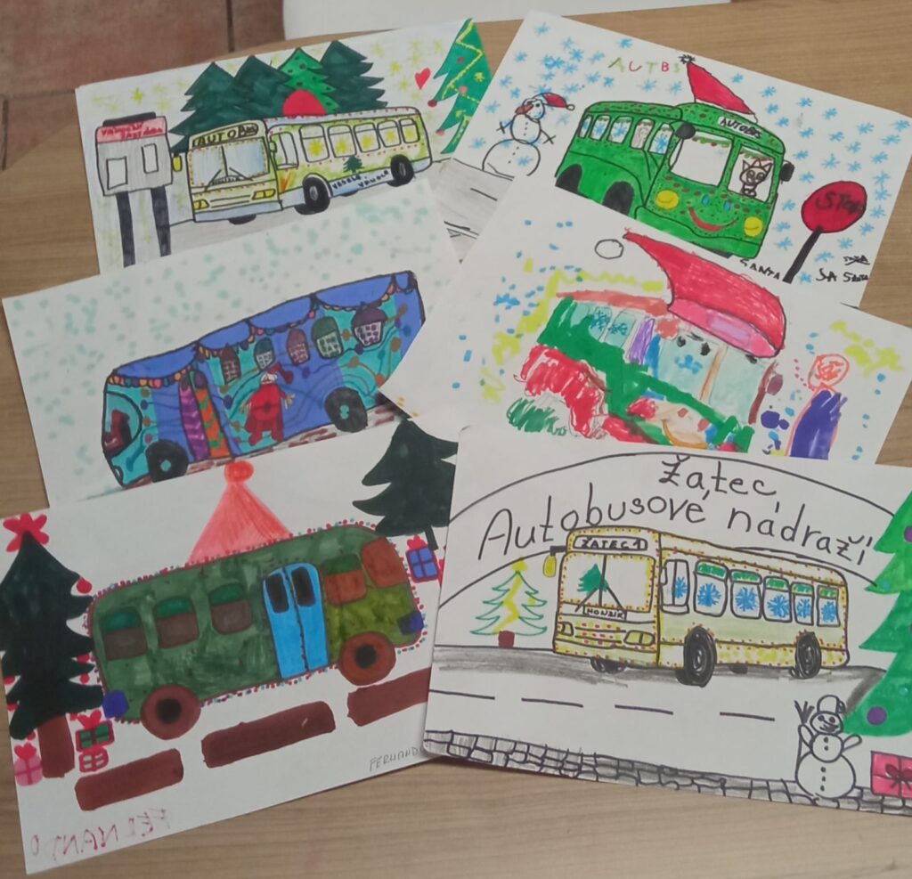 V rámci společného předvánočního setkání jsme s dětmi z azylového domu uspořádali tvořivou dílnu na téma ,, Vánoční autobus“. Děti si nejprve povidaly o tom, jaké barvy,symboly a motivy k Vánocům patří,a poté své představy přenesly na papír. Vznikly originální a hravé návrhy autobusu ozdobených světýlky,sněhovými vločkami, dárky i postavičkami,které vyjadřovaly vlastní přání a fantazii. 🎄